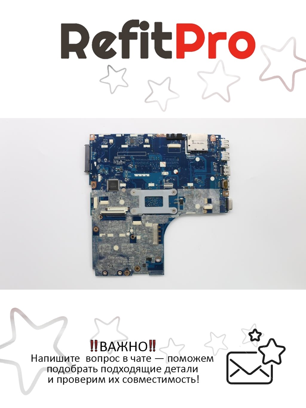 Материнская плата для ноутбука Lenovo B50-45 AMD A6-6310 1000W FP UMA W8S (5B20F86198) – это оригинальная запчасть, которая предназначена для использования в ноутбуках, моноблоках и мониторах.