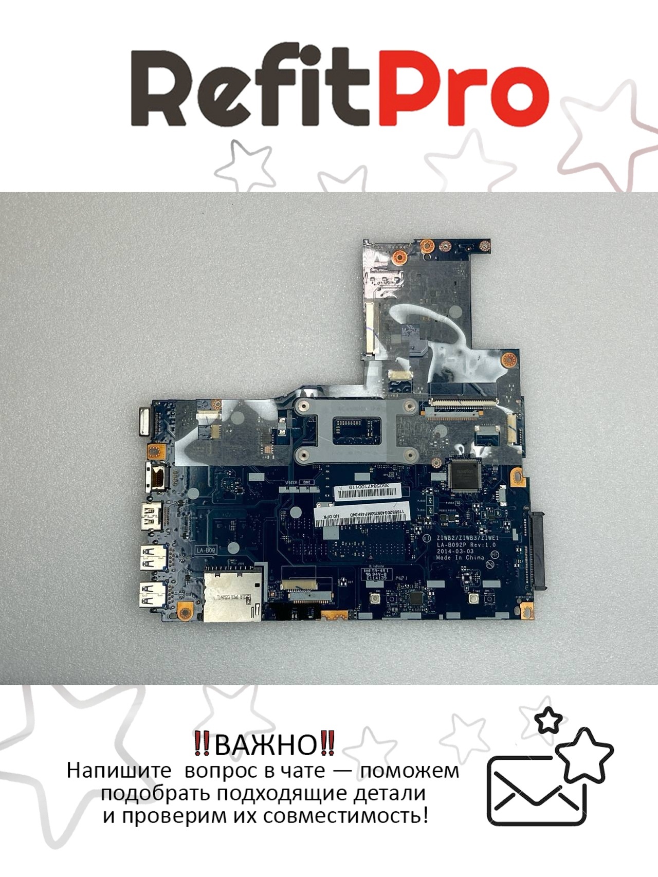 Материнская плата для ноутбука Lenovo B50-70 LA-B09 UMA Intel Core i3 4010U NFP NDOC 1000 (5B20G40925) – это оригинальная запчасть, разработанная специально для устройств Lenovo.