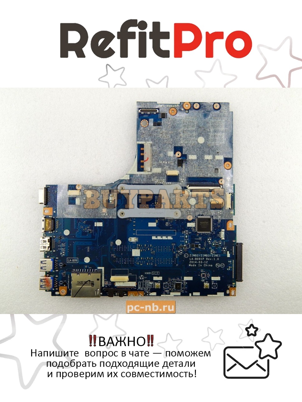 Материнская плата для ноутбука Lenovo B50-70 LA-B09 W8S 1G Intel Pentium 3558U FP DOC 1000 (5B20G46119) – это оригинальная запчасть, разработанная специально для устройств Lenovo.