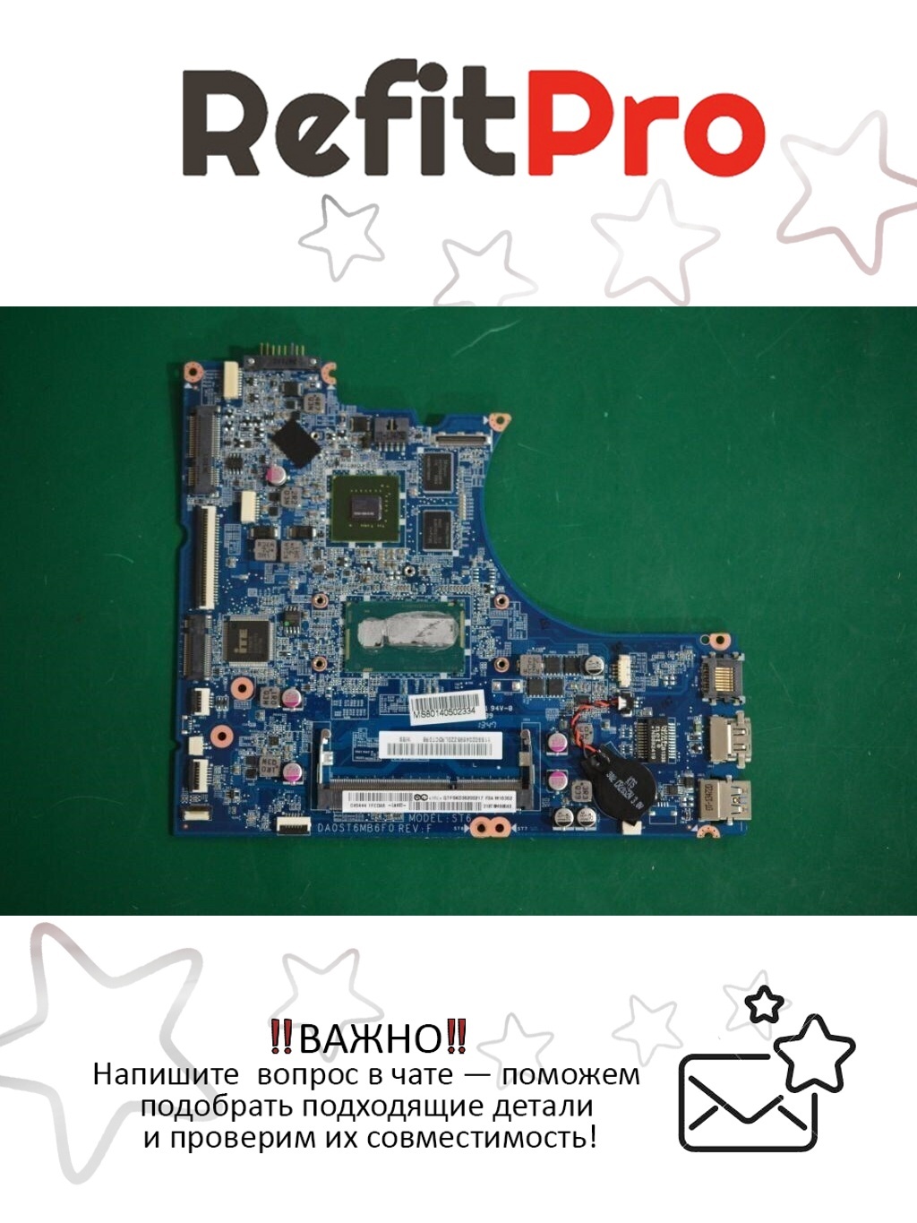 Материнская плата оснащена процессором Intel Core i5-4200U с 2 ГБ оперативной памяти, что обеспечивает высокую производительность и быстродействие при выполнении различных задач.