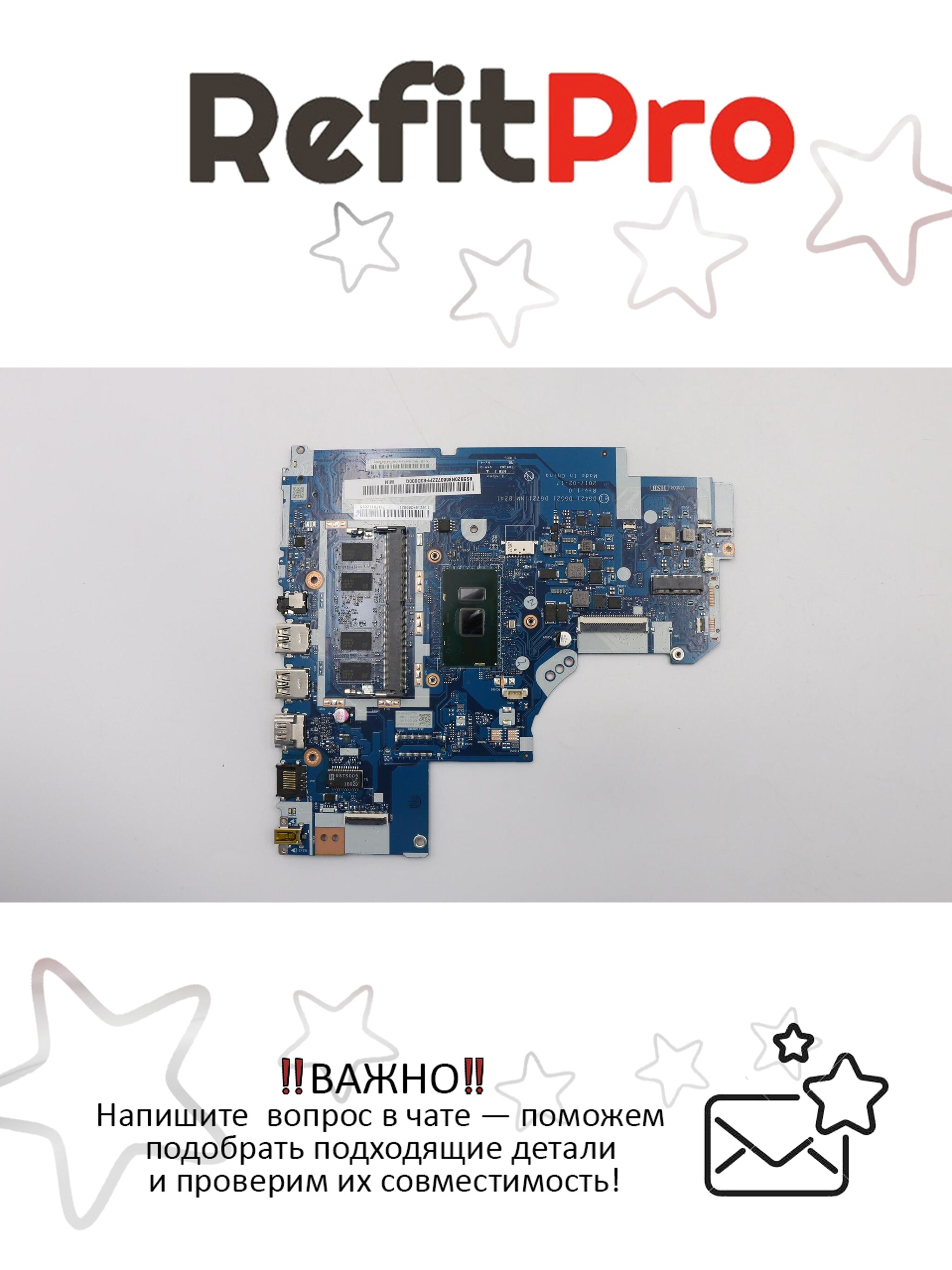 Материнская плата для ноутбука Lenovo ideapad 320-15IKB NM-B24 Intel core I3-7100U UMA FP 4G WIN (5B20N86607) - это оригинальная запчасть, разработанная специально для устройств Lenovo.