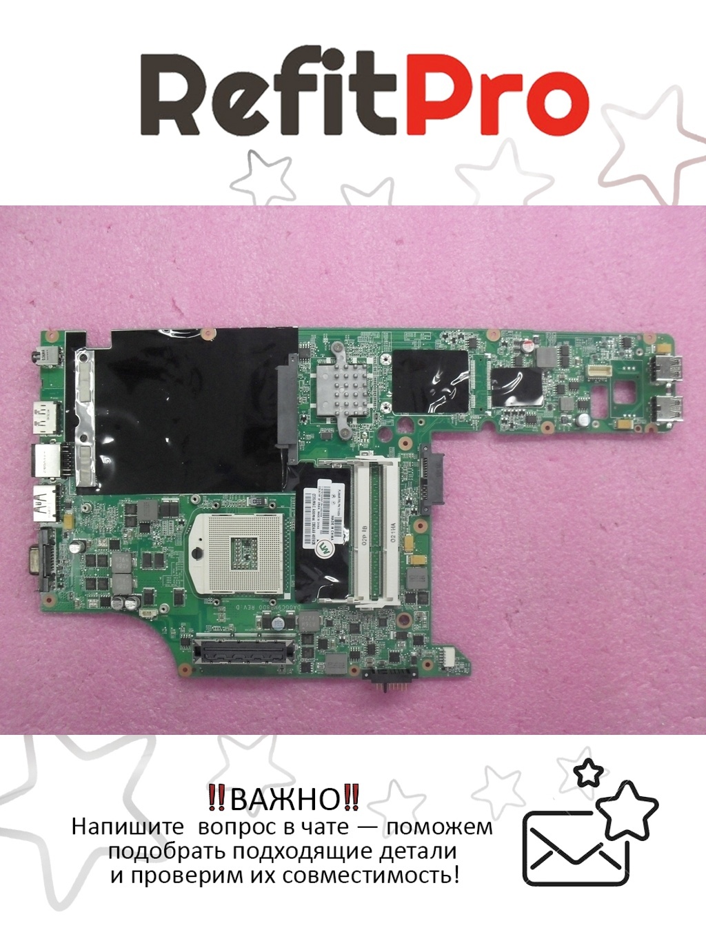Тип и комплектация: материнская плата не имеет модели процессора и видеочипа, что делает ее универсальной и подходящей для широкого спектра ноутбуков.