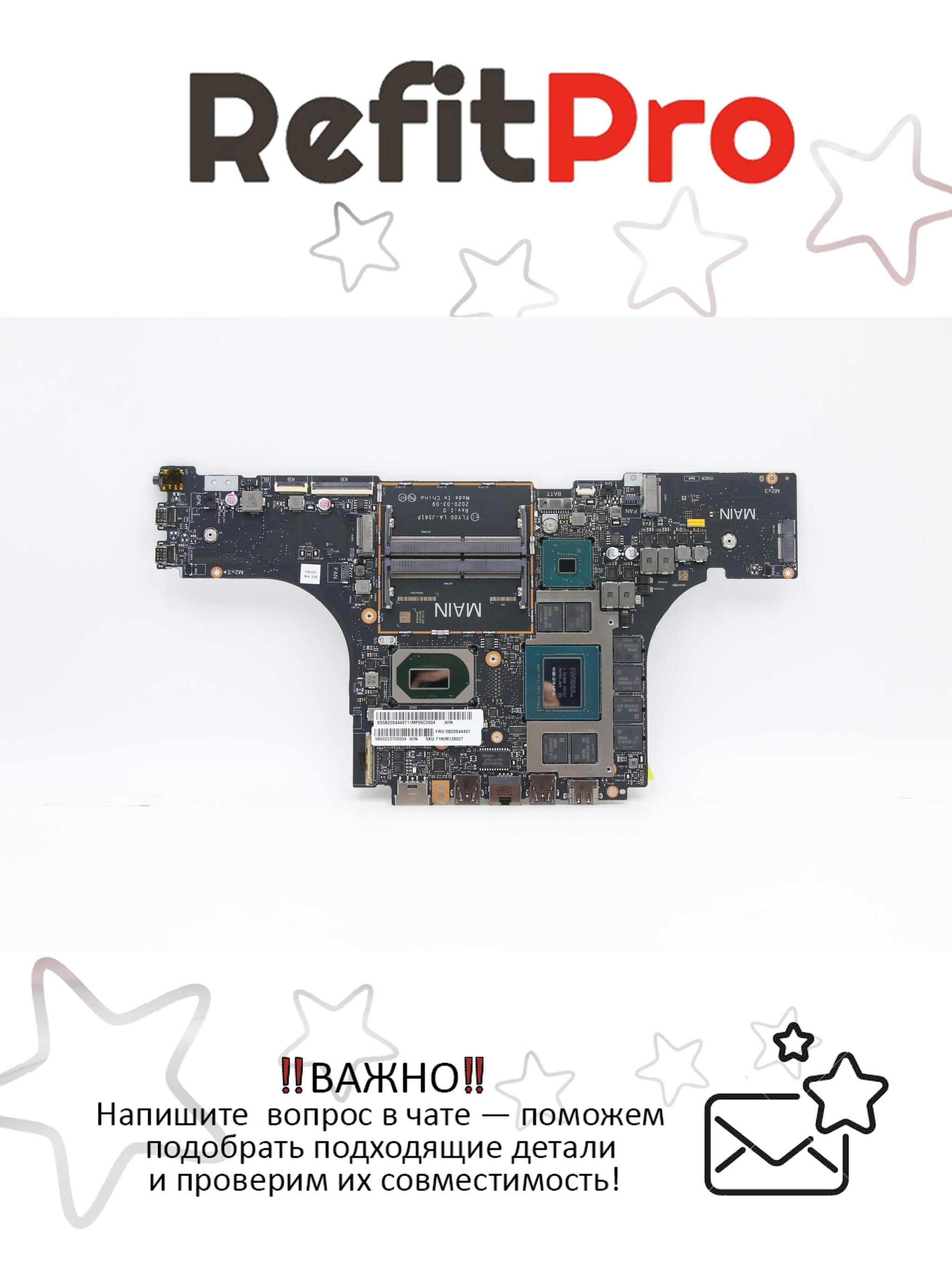 В целом, материнская плата для ноутбука Lenovo Legion 7-15IMH05 I710750H RTX20708G WIN (5B20S44497) является отличным выбором для тех, кто ищет надежную и производительную запчасть для своего устройства.