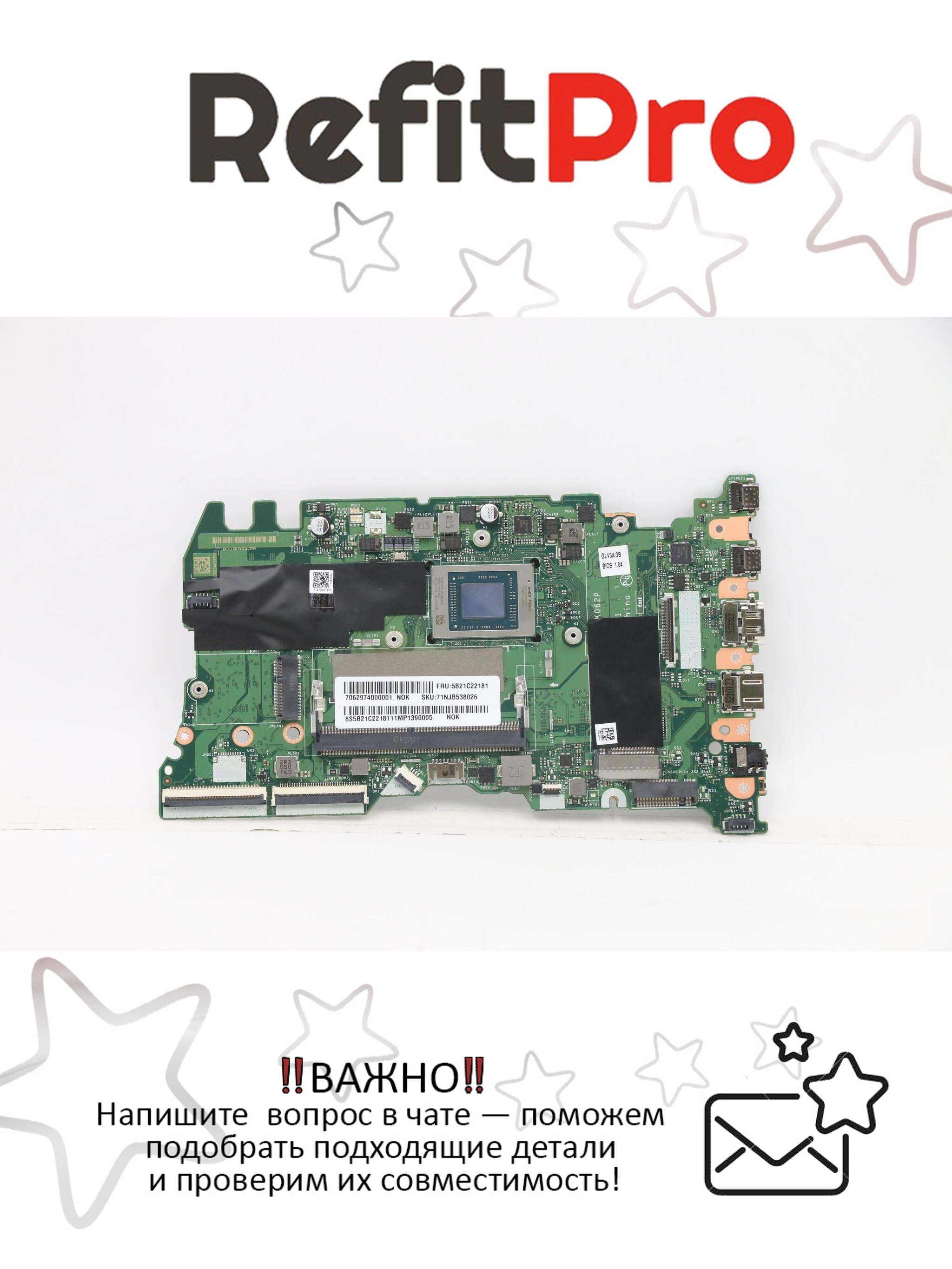 Материнская плата для ноутбука Lenovo ThinkBook 15 G3 ACL 21A4 NOK Ryzen 5-5500U UMA 8G D WW RPMC (5B21C22181) – это оригинальная запчасть, предназначенная для установки в ноутбуки, моноблоки и мониторы от бренда Lenovo.