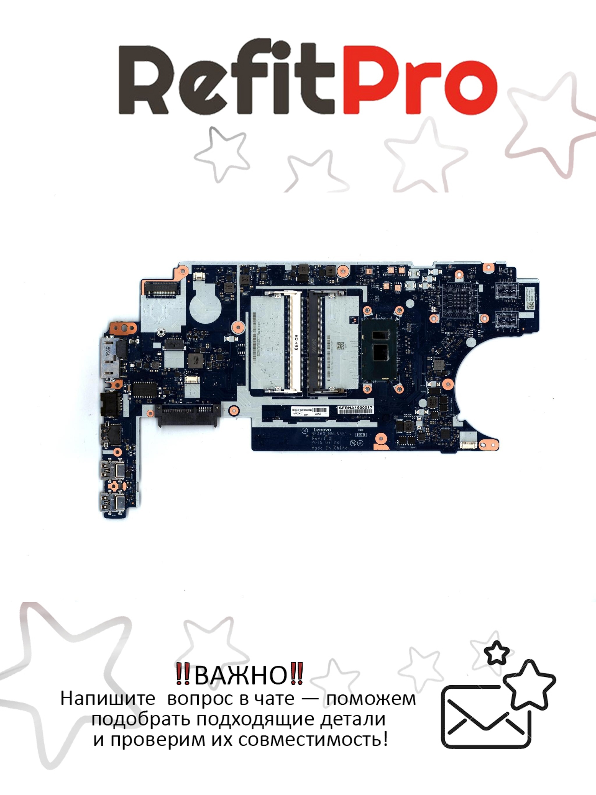 Эта материнская плата совместима с ноутбуком Lenovo ThinkPad E460, что гарантирует легкую и быструю установку.