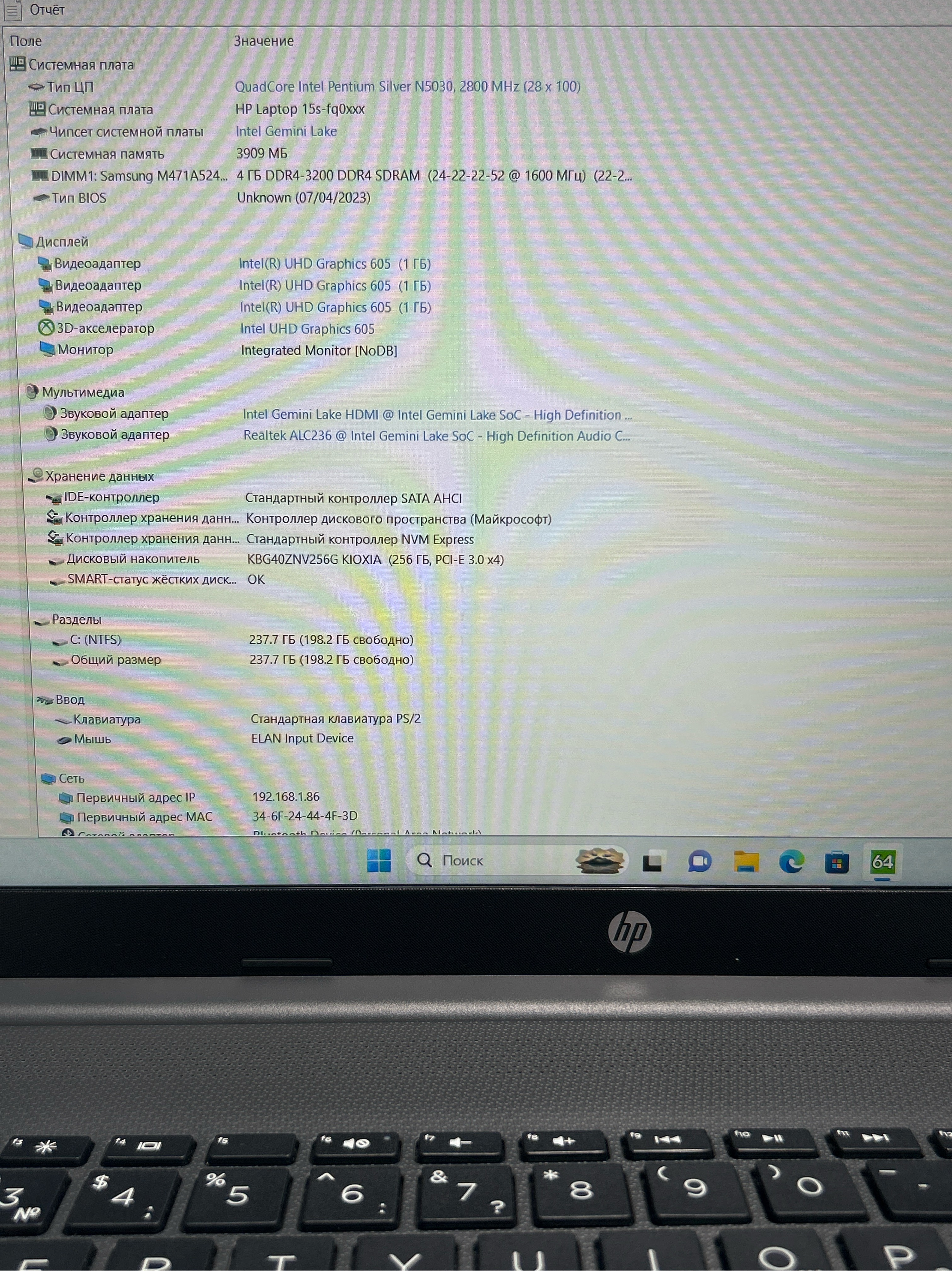 Ноутбук HP 15s-fq0094ur (669X9EA) 15.6"/Intel Pentium Silver N5030/RAM 4GB/SSD 256GB/Intel HD Graphics/1920*1080/IPS/Windows 11/Подсветка кл-ры: нет/серый. Состояние: B1