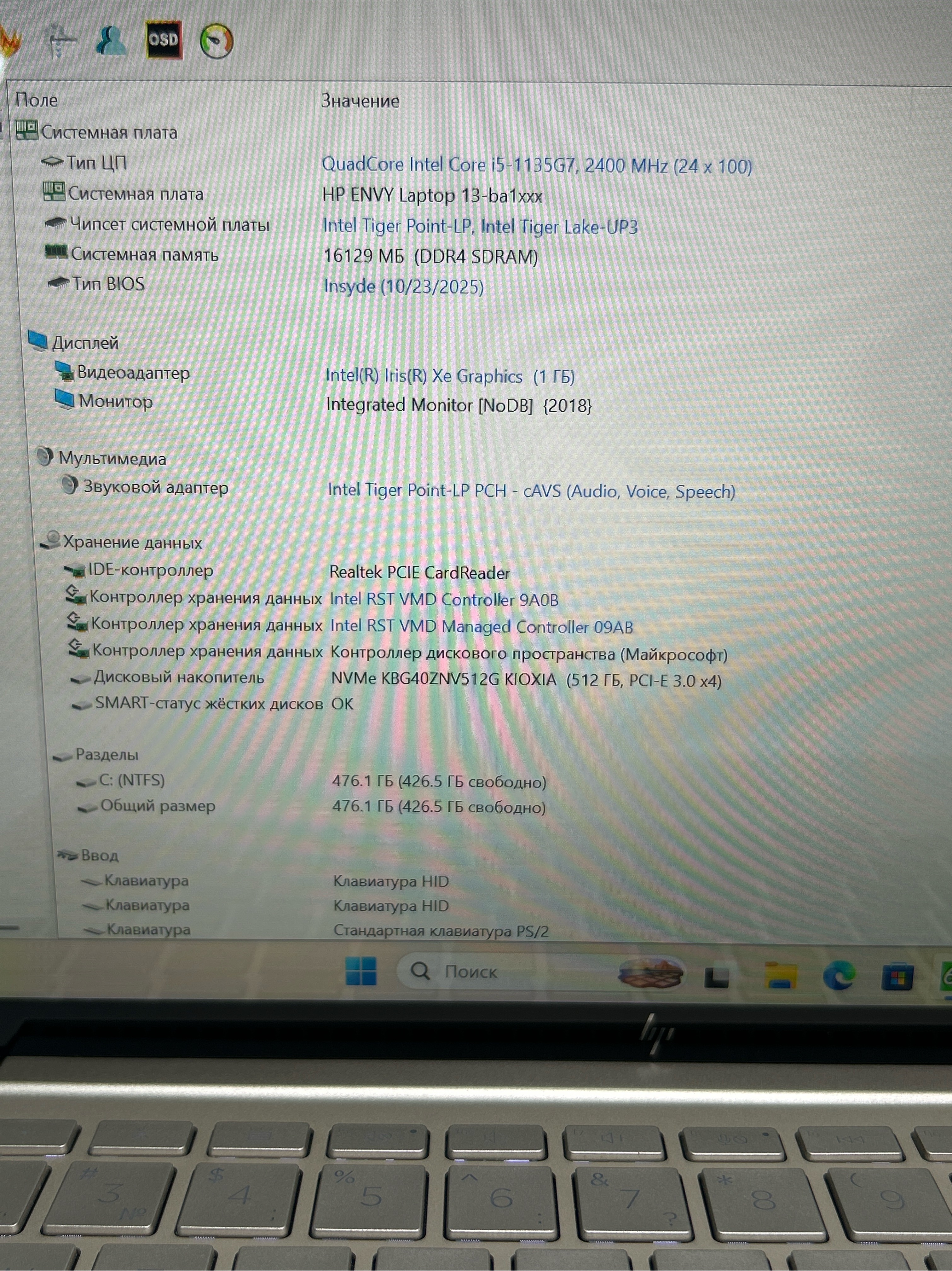 Ноутбук HP ENVY 13-ba1031ur (2J6L8EA) 13.3"/Intel Core i5-1135G7/RAM 16GB/SSD 512GB/Intel Iris Xe Graphics/1920*1080/IPS/Windows 11/Подсветка кл-ры: LED/золотистый. Состояние: Уценка/царапины на матрице/не ориг. коробка