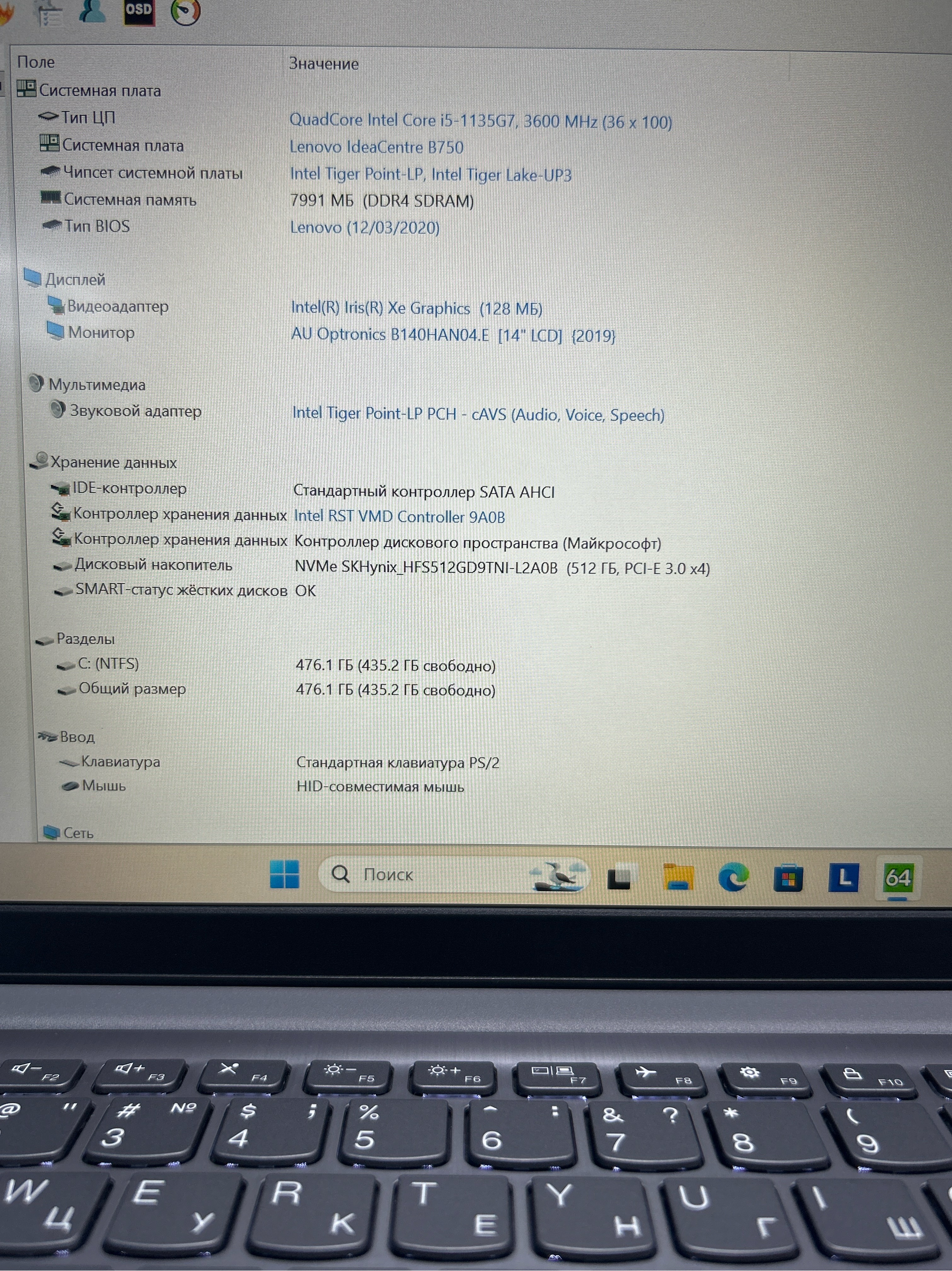 Ноутбук Lenovo IdeaPad 3 14ITL6 (82H7004PRK) 14"/Intel Core i5 1135G7/RAM 8GB/SSD 512GB/Intel Iris Xe Graphics/1920x1080/IPS/Windows 11/Подсветка кл-ры:LED/Цвет: Серебристый. Состояние: B1