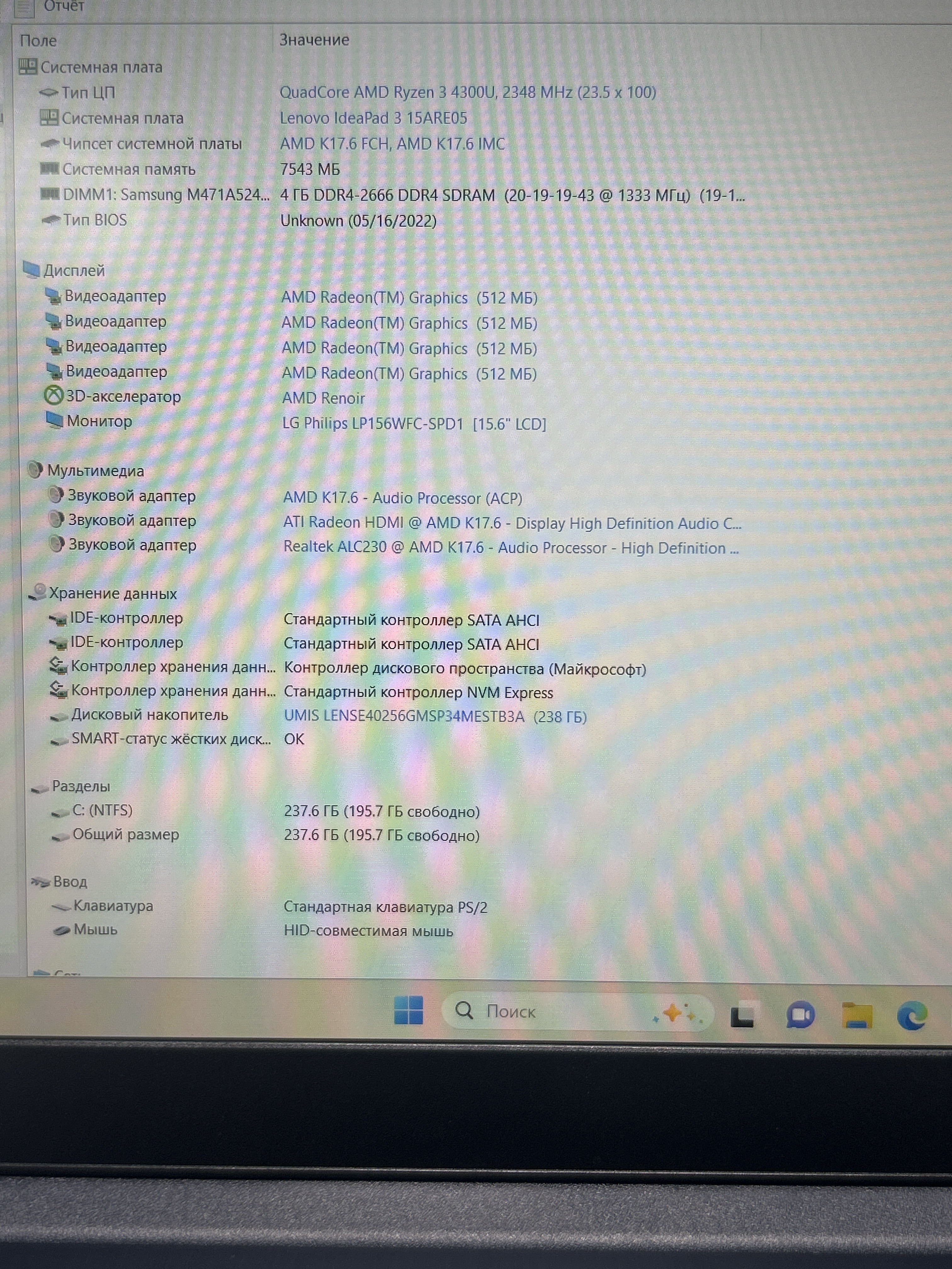 Ноутбук Lenovo IdeaPad 3 15ARE05 (81W40074RU), 15.6"/AMD Ryzen 3 4300U/RAM 8 GB/SSD 256 GB/AMD Radeon Graphics/1920x1080/IPS/Windows 11/Подсветка кл-ры нет/черный. Состояние: Уценка/прокручен topcase