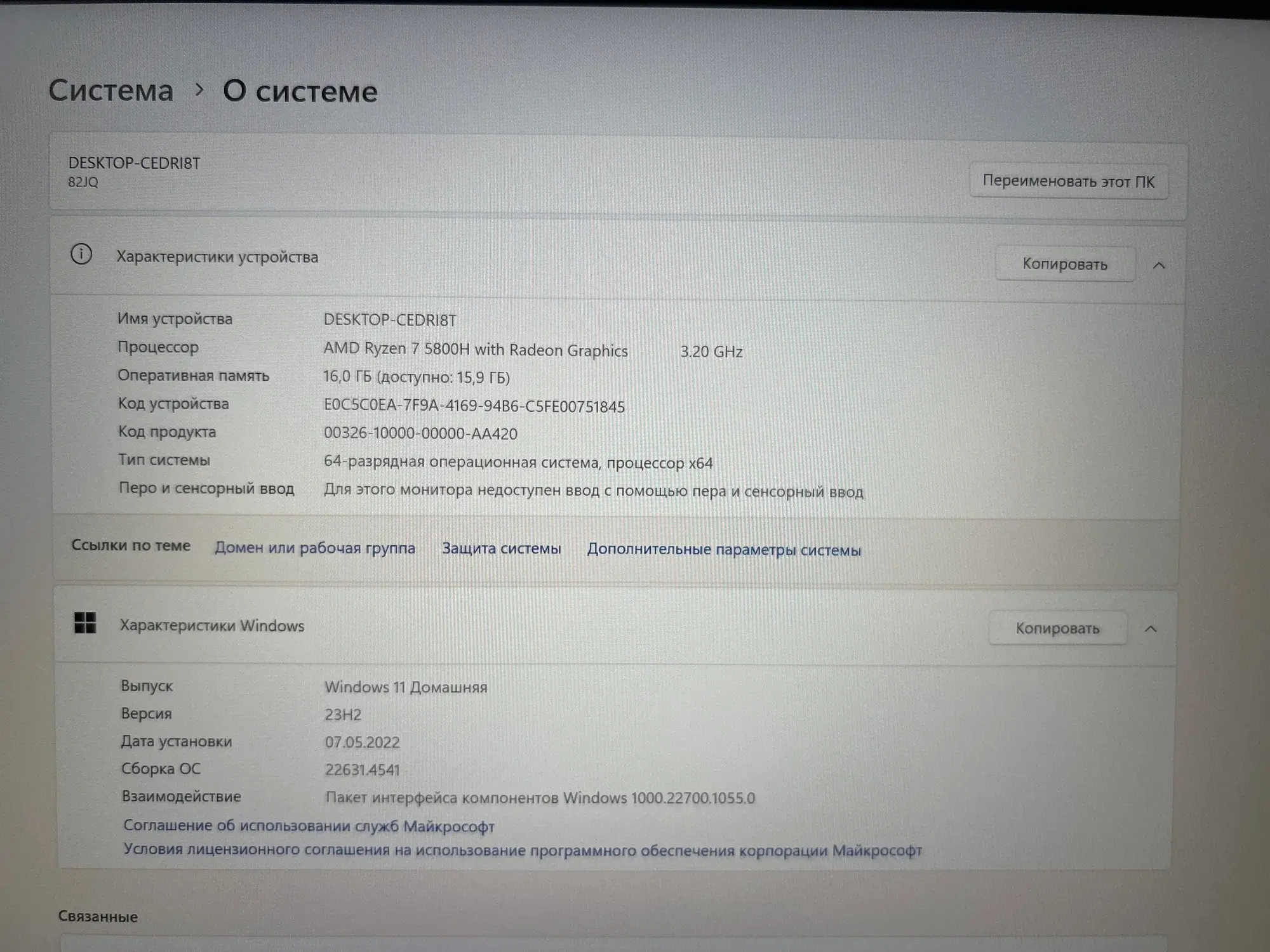 Характеристики