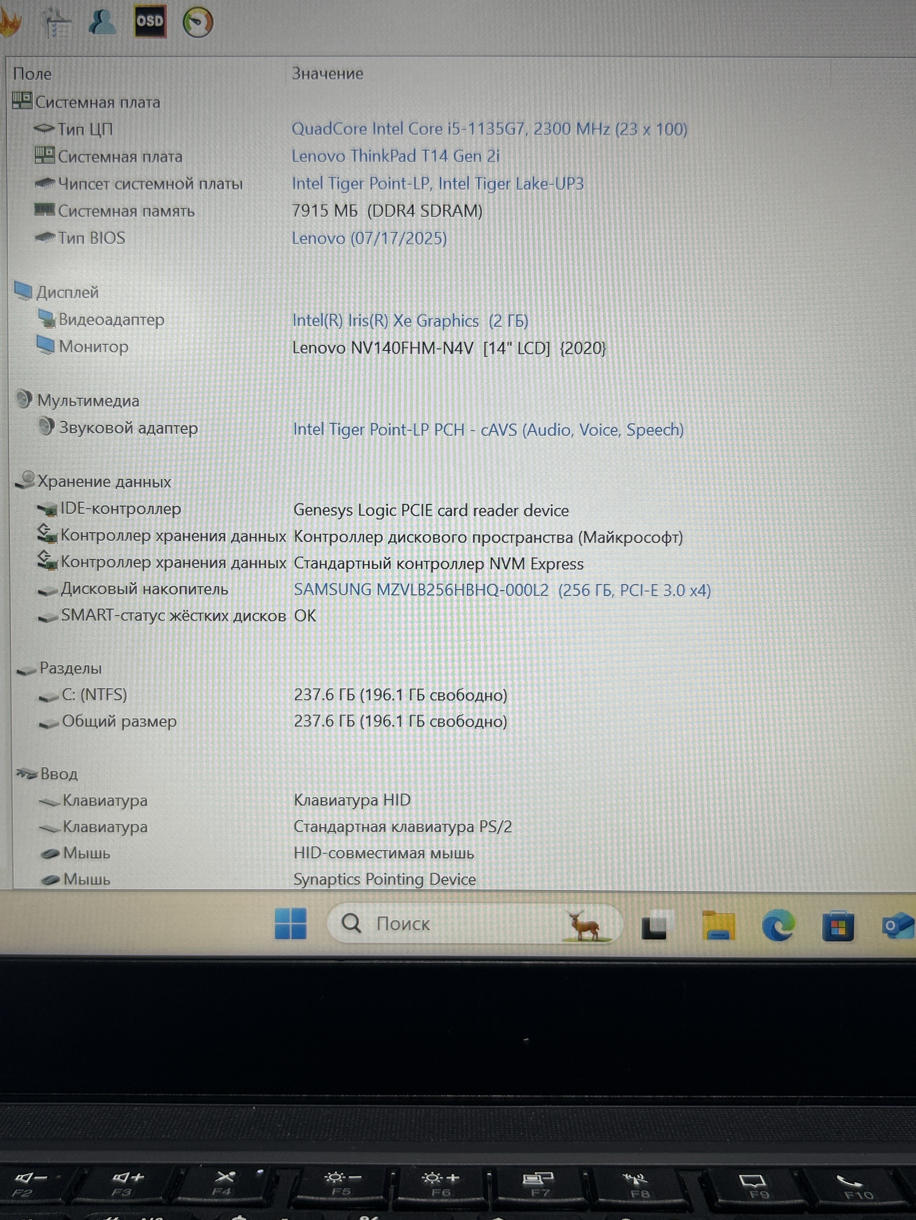 Ноутбук Lenovo T14 GEN2 (20W1S5YH1V) 14''/Intel Core i5 1145G7/RAM 8GB/SSD 256GB/Intel Iris Xe Graphics/1920x1080 IPS/Windows 11/Подсветка кл-ры: нет/Цвет: Чёрный. Состояние: Уценка/большие следы на матрице от клавиатуры/потертости на клавиатуре