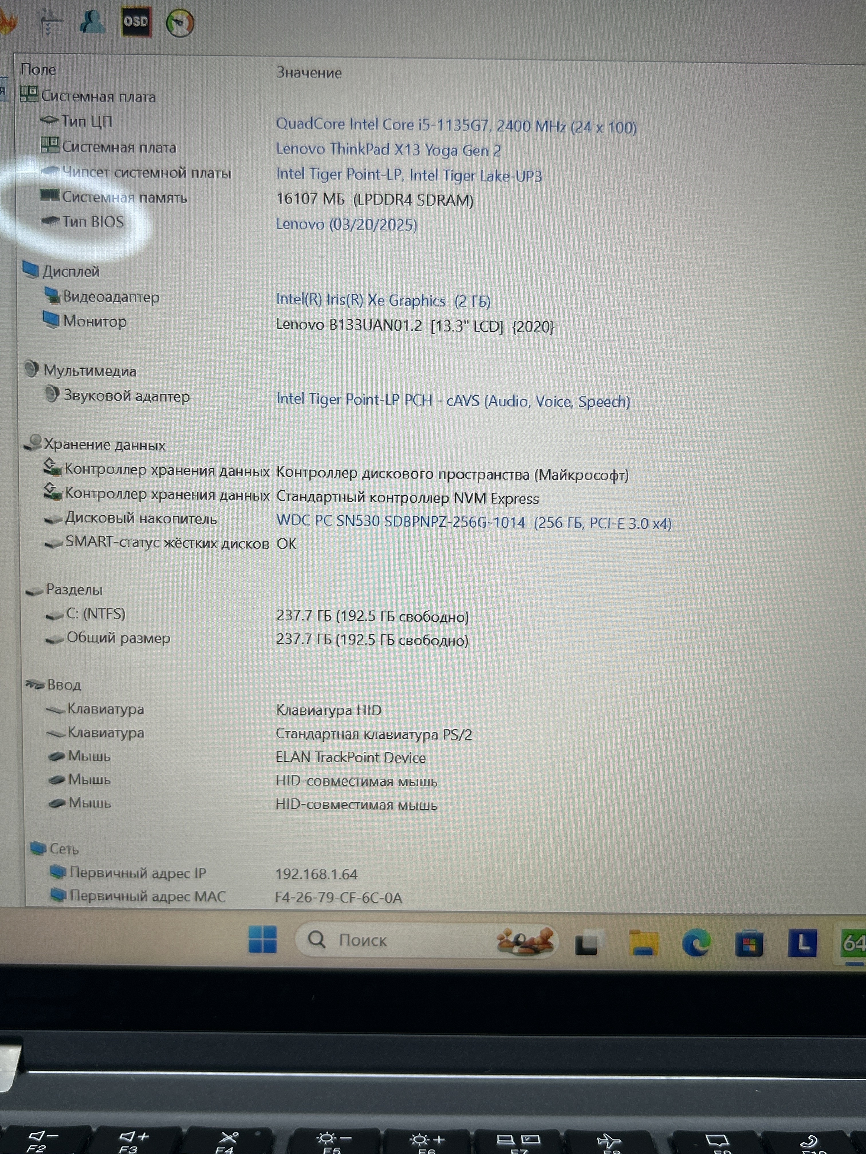 Ноутбук Lenovo ThinkPad X13 Gen 2 (20W8002RUS) 13.3"/Intel Core i5 1135G7/RAM 16GB/SSD 256GB/Intel Iris Xe Graphics/1920*1200/IPS/Windows 11/Подсветка кл-ры: LED/Чёрный. Состояние: C1