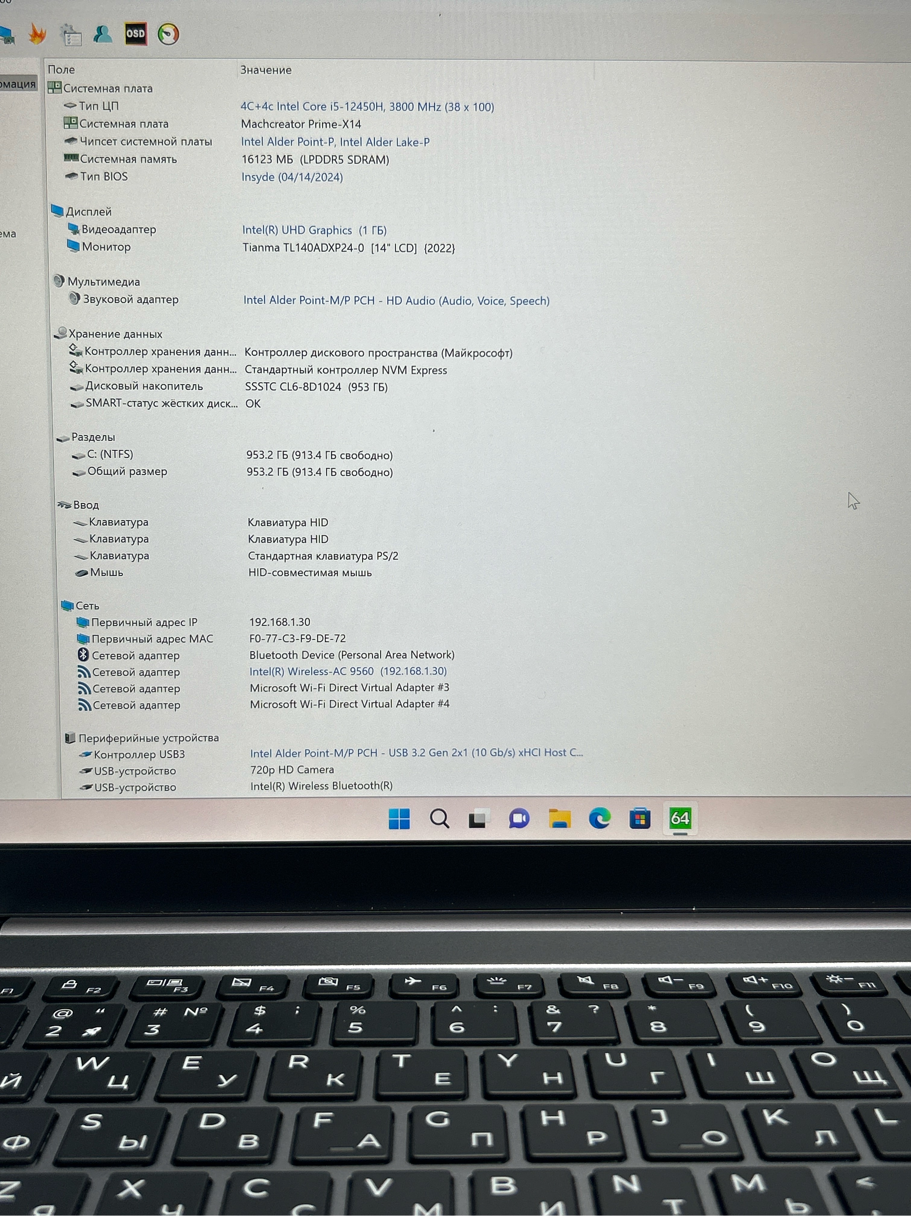 Ноутбук Machcreator Prime X14 (JB0C1E001RU) 14.1"/Intel Core i5-12450H/RAM 16GB/SSD 1024GB/Intel UHD Graphics/2880x1800/IPS/120Hz/Windows 11/Подсветка кл-ры: LED/Серый. Состояние: A1
